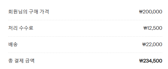 처리 수수료 + 배송비를 포함하여 234,500원이 결제되었습니다.