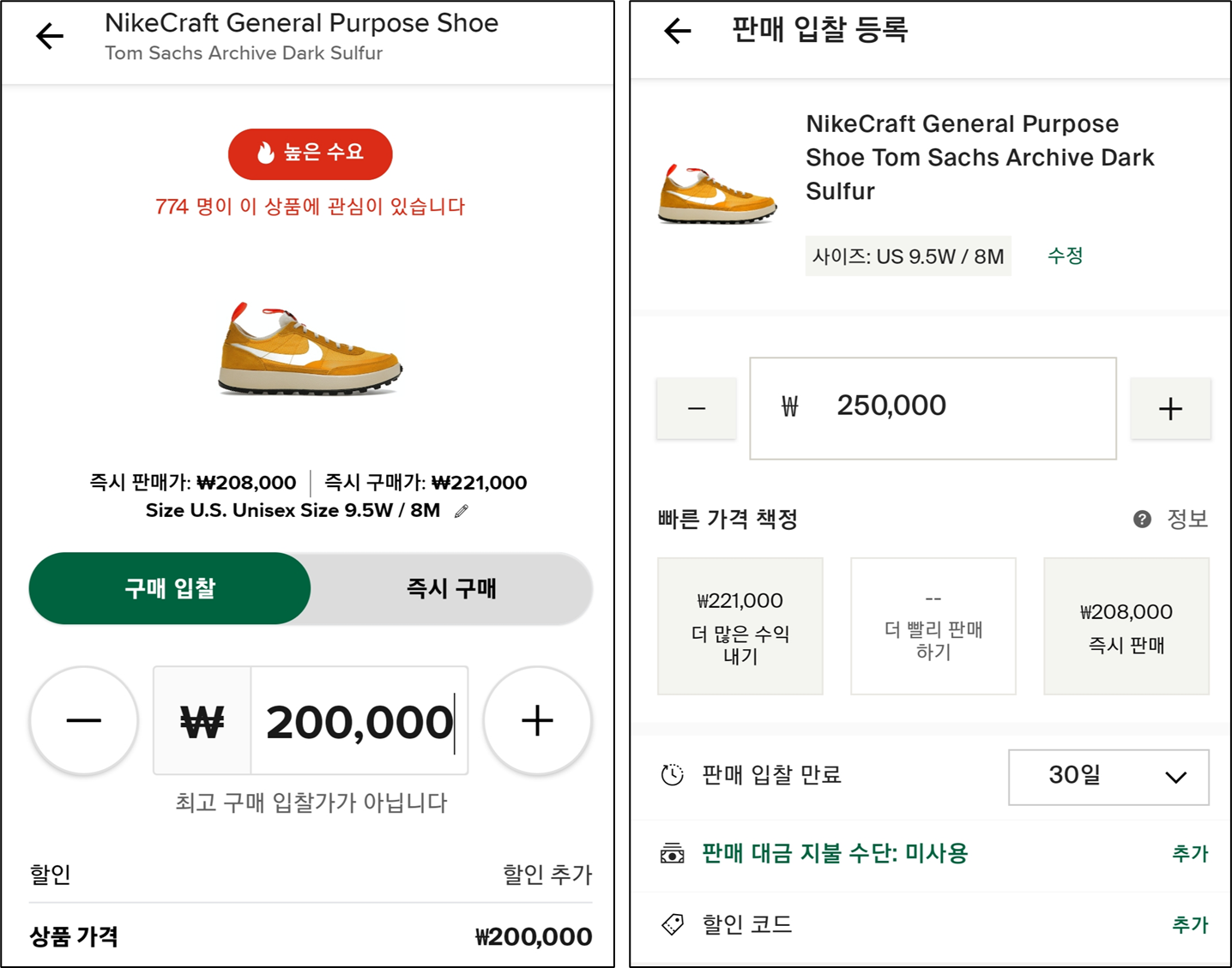 실은 저도 시세보다 조금 낮게 구매 입찰을 올려놨으나 이틀만에 포기하고 즉시 구매를 해버렸습니다... 하핳핳